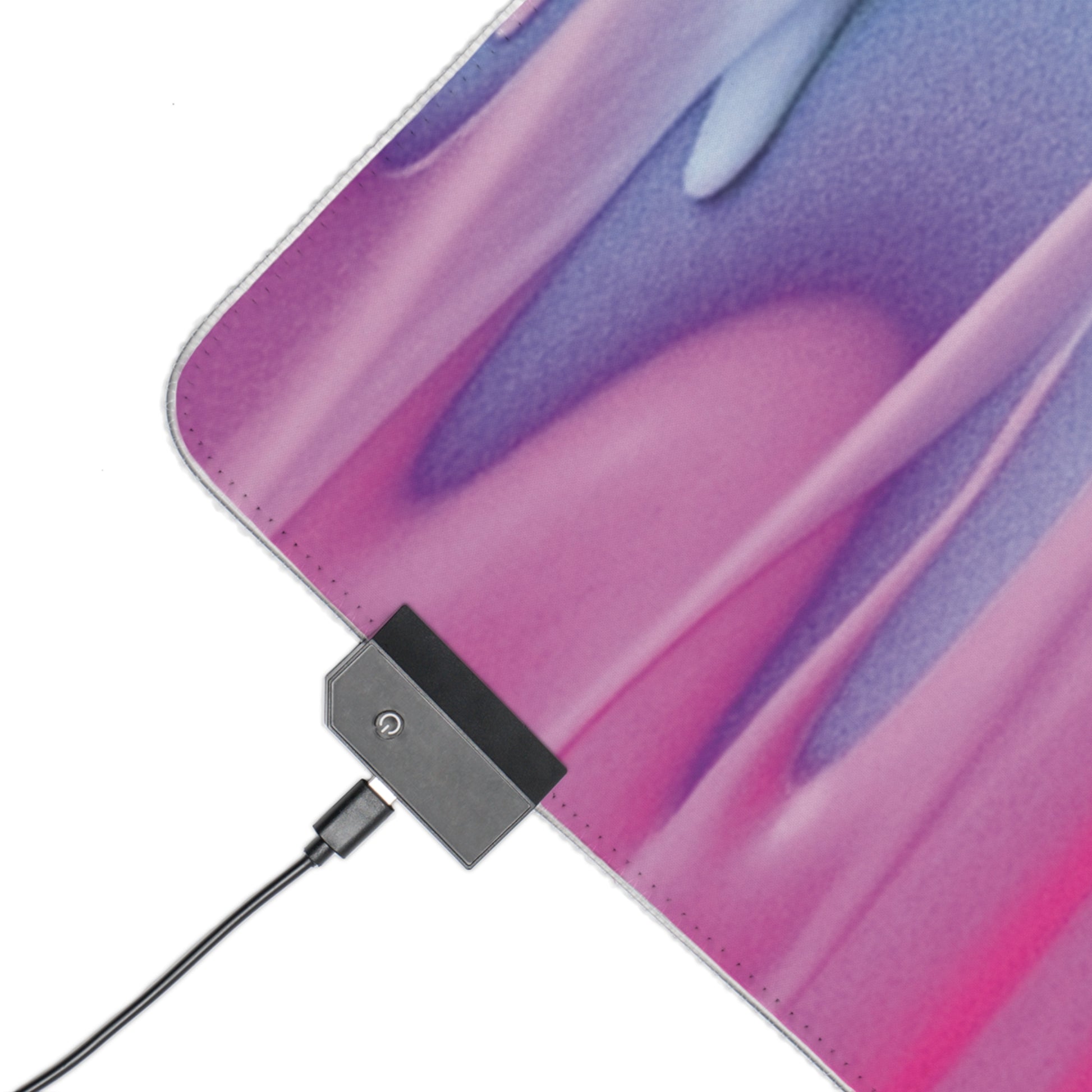 Enhance your gaming setup with the Melted Colors LED Mouse Pad. Featuring vibrant colors and a full-edge LED light strip, this mouse pad creates an immersive and visually striking experience. Made from a 100% polyester surface with a non-slip rubber backing, it provides smooth and precise mouse movements while keeping your pad securely in place.