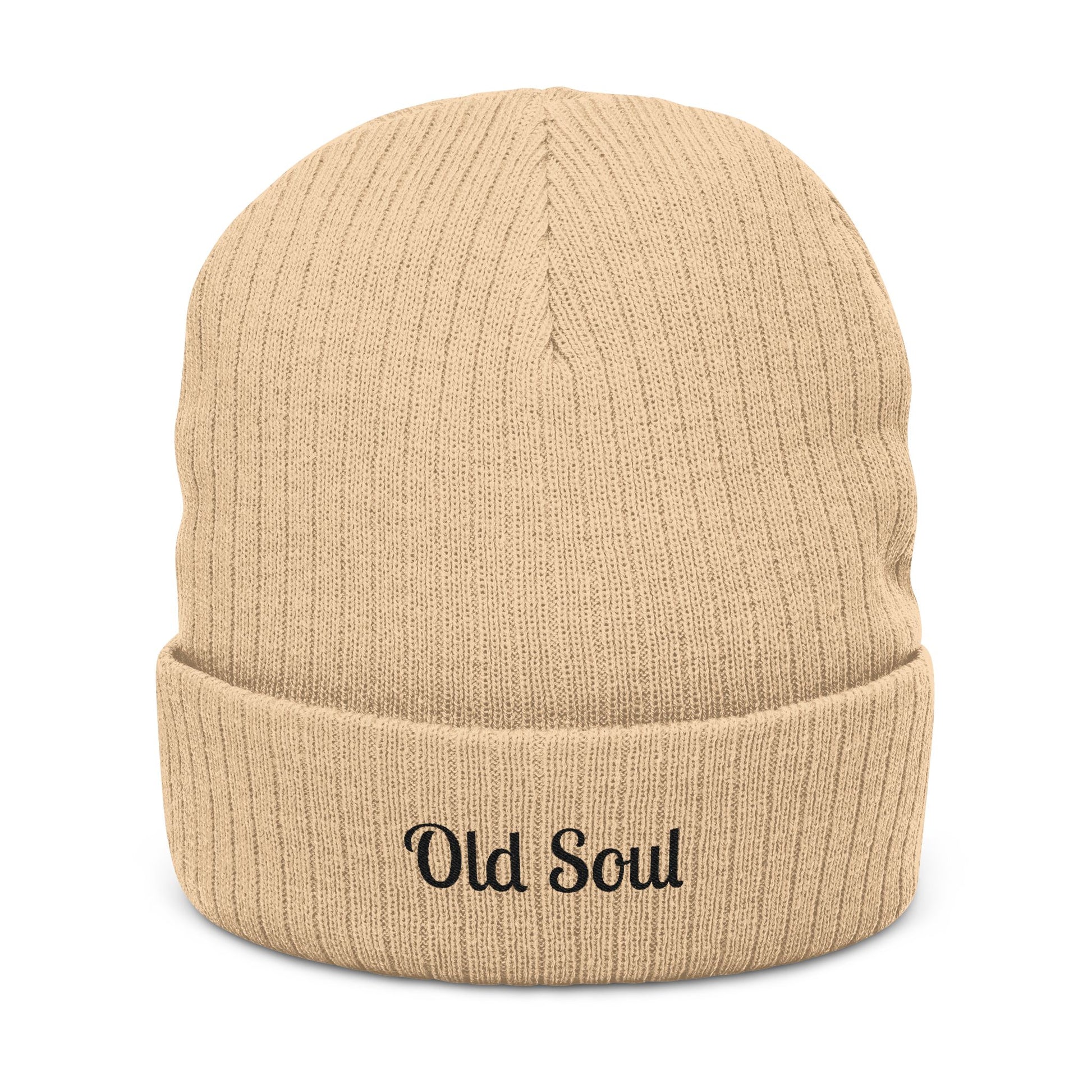 Old Soul Embroidered Ribbed Beanie – Cozy Winter Hat, Trendy Knit Accessory, Gift for Him or Her