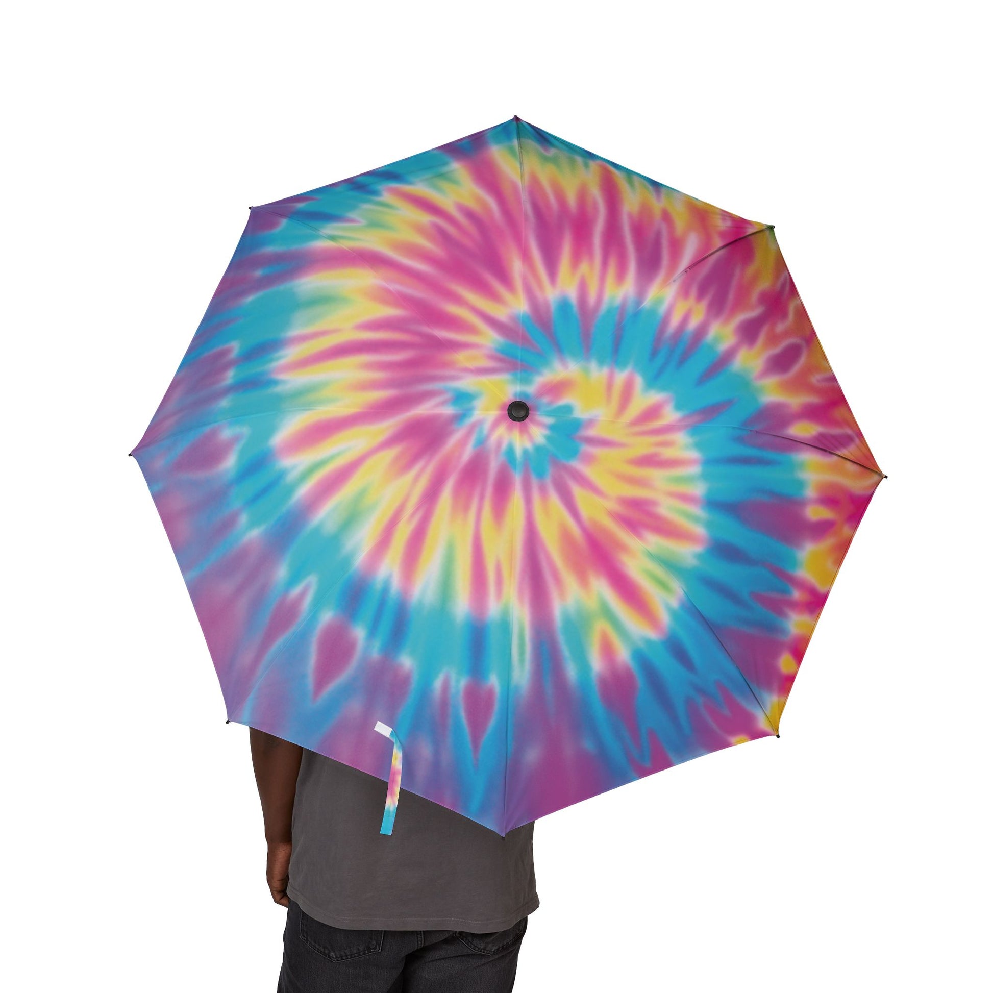 Vibrant Tie-Dye Semi-Automatic Umbrella, Foldable Rain Gear, Beach Accessory, Festival Essential, Unique Gift Idea